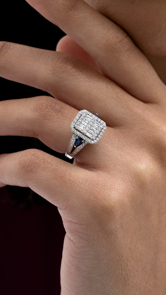 Mavi Safir Işıltısı Pırlanta Yüzük