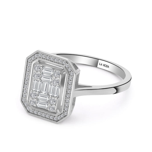 Büyük Baget Pırlanta Detaylı Beyaz Altın Yüzük