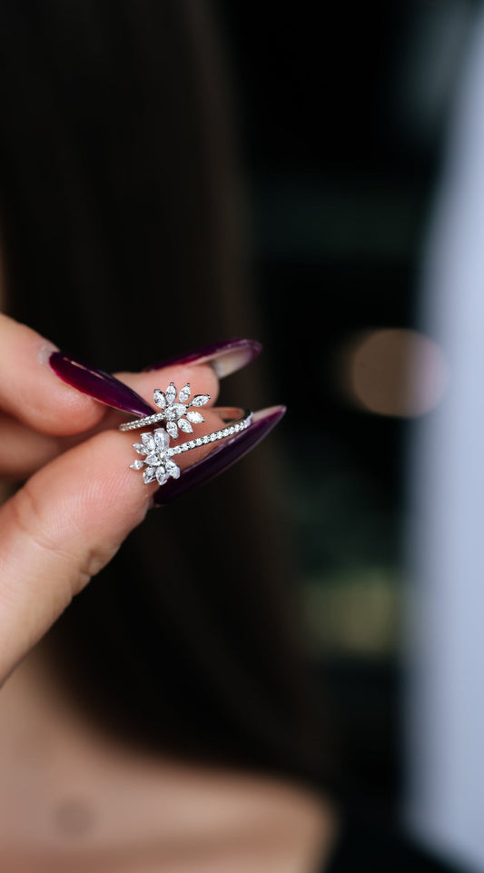 Floral İhtişam Pırlanta Beyaz Altın Yüzük