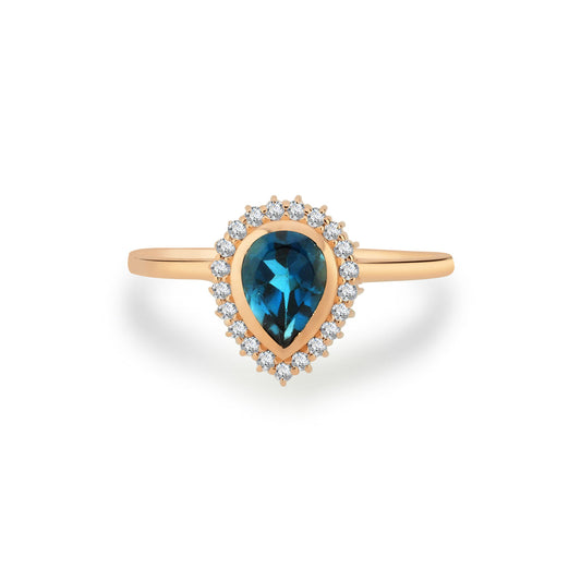 Gözyaşı Topaz Pırlanta Rose Altın Yüzük