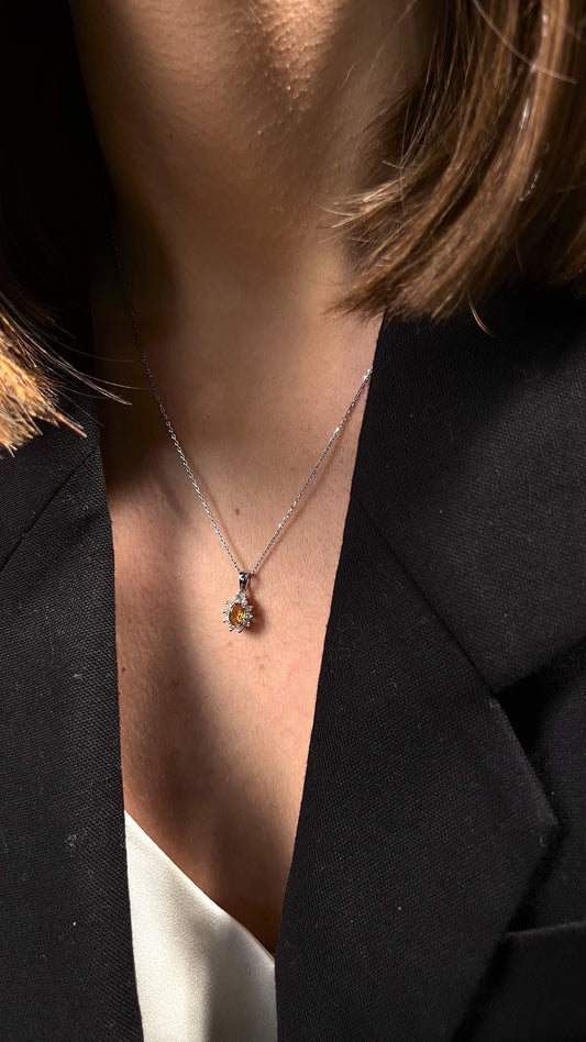 Güneşin Işıltısı Sitrin ve Pırlantalı Beyaz Altın Kolye