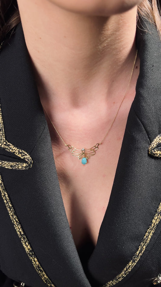 Kanat Parıltısı Altın Turkuaz Pırlantalı KolyeNormal fiyat 14.586,00 ₺Normal fiyatBirim fiyat /17.160,00 ₺İndirimli fiyat 14.586,00 ₺İndirim
