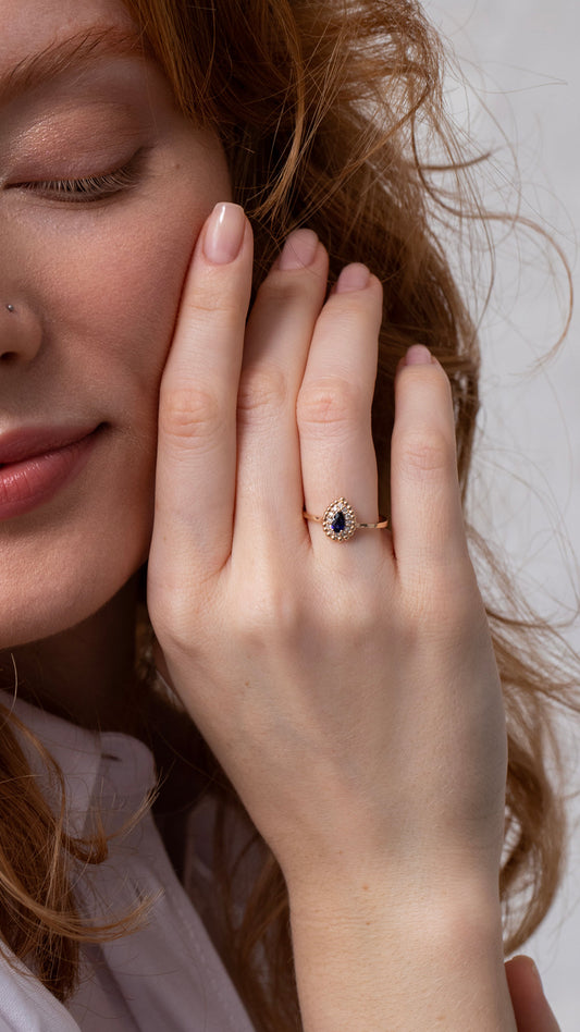 Kraliyet Gözyaşı Safir ve Pırlanta Rose Altın Yüzük