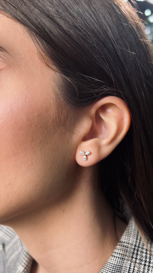 Lilya Beyaz Altın Markiz Pırlanta Küpe