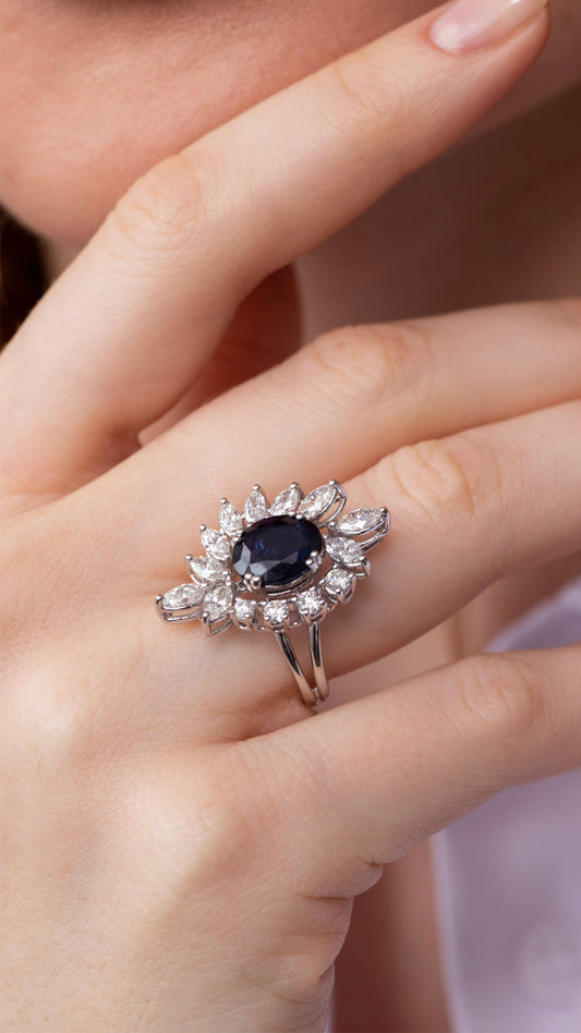 Mavi Gece Safir ve Pırlanta Yüzük