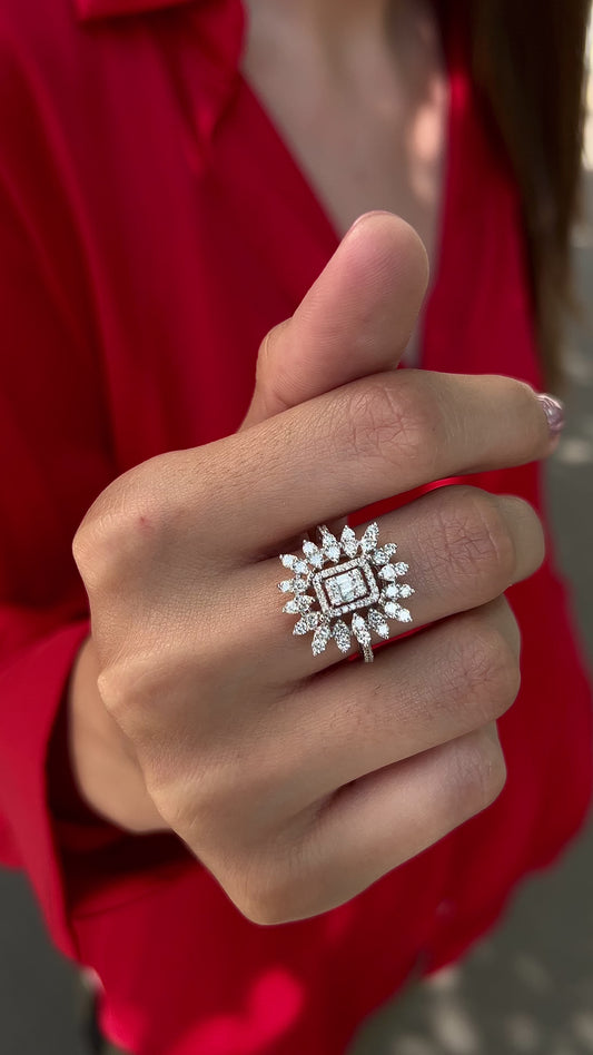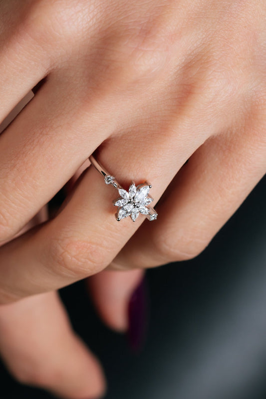 Markiz Pırlanta Çiçeği Beyaz Altın Yüzük