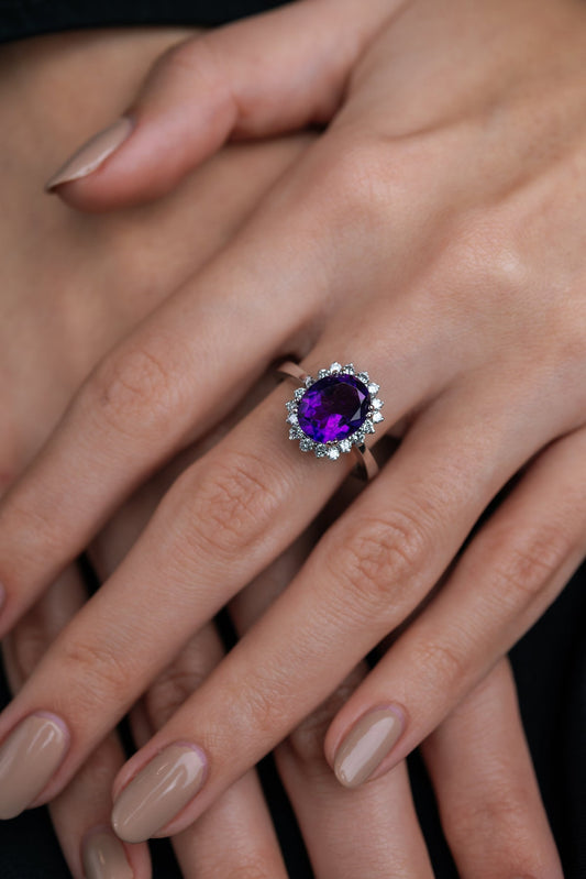 Anturaj Ametist Zarafeti Pırlanta Yüzük