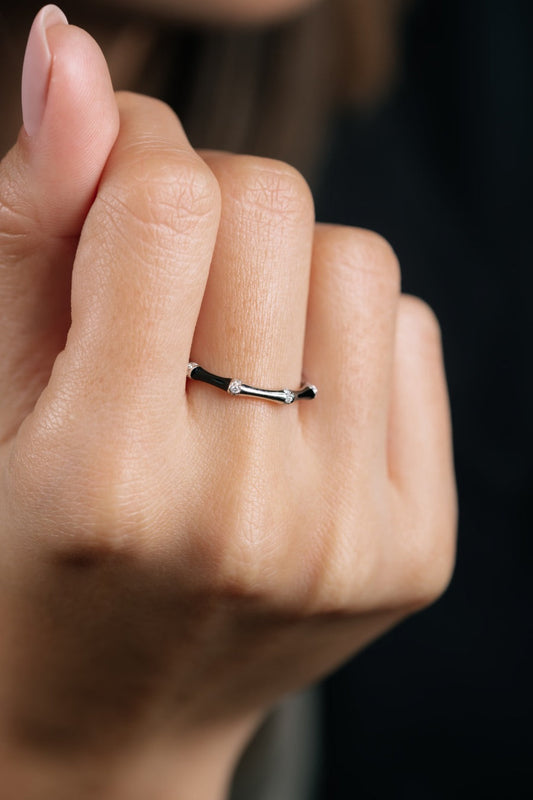 Siyah Mineli Beyaz Altın Baget Pırlanta Yüzük