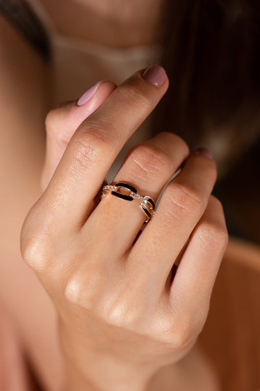 Siyah Mineli Pırlanta Rose Altın Yüzük