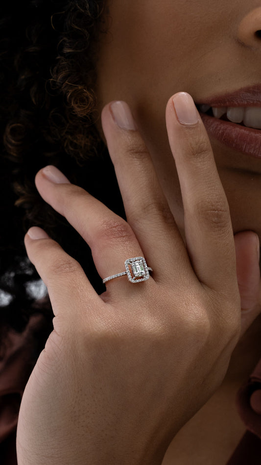 Zarif Kare Kesim Baget Pırlanta Yüzük