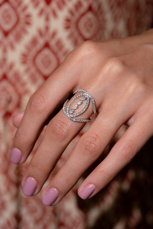 Zarif Kuğu Beyaz Altın Pırlanta Yüzük