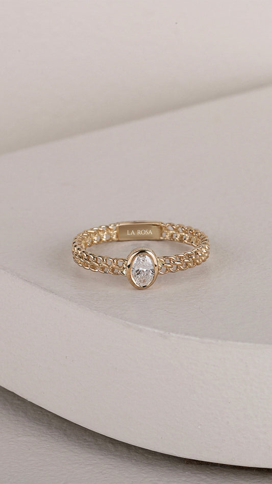 Zincir Desenli Altın Oval Kesim Pırlanta Yüzük