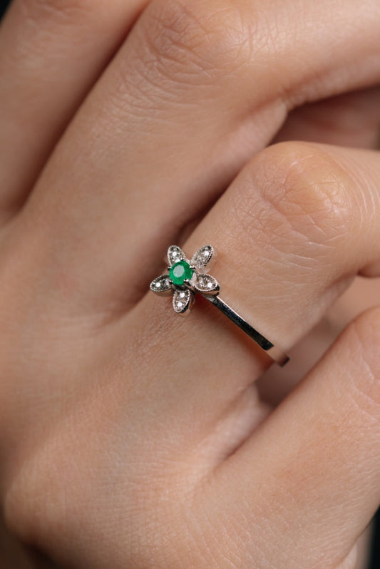İndirimZümrüt Çiçeği Pırlanta Yüzük