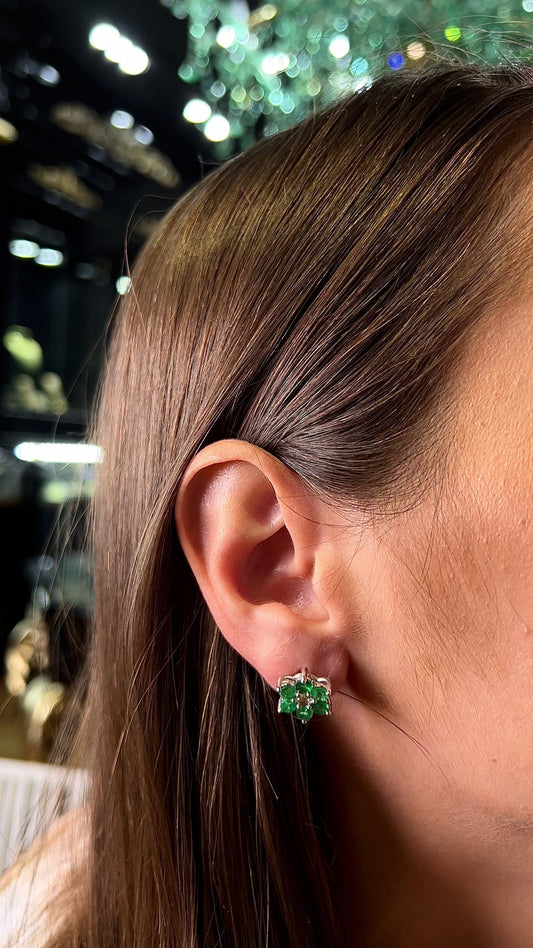 İndirimZümrüt Çiçeği Beyaz Altın Küpe
