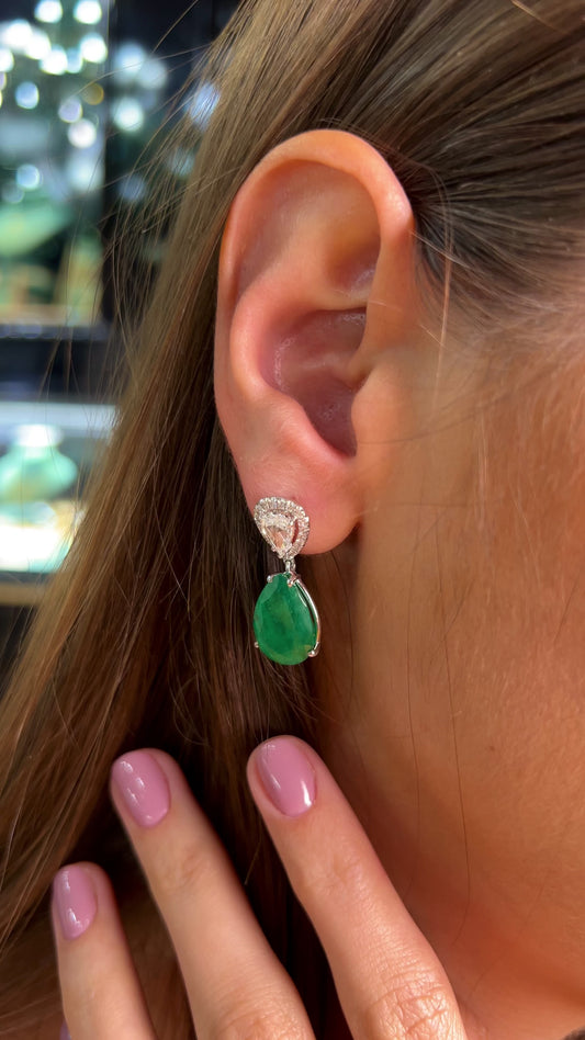 Zümrüt Bahçesi Beyaz Altın Pırlanta Küpe