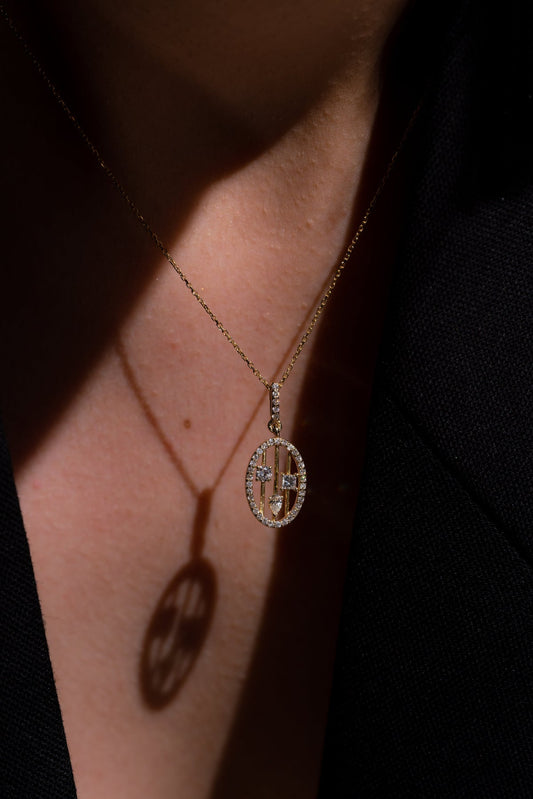 Zarif Çizgiler Oval Pırlanta Kolye