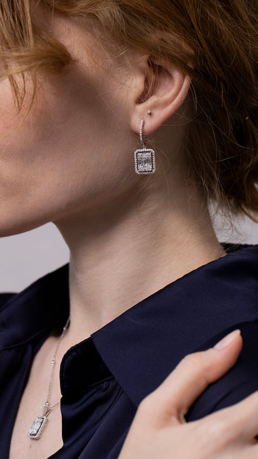 Aphrodite'nin Gözdesi Beyaz Altın Baget Pırlanta Küpe