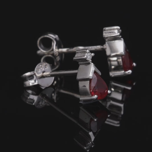 Alev Kırmızısı Yakut Beyaz Altın Küpe