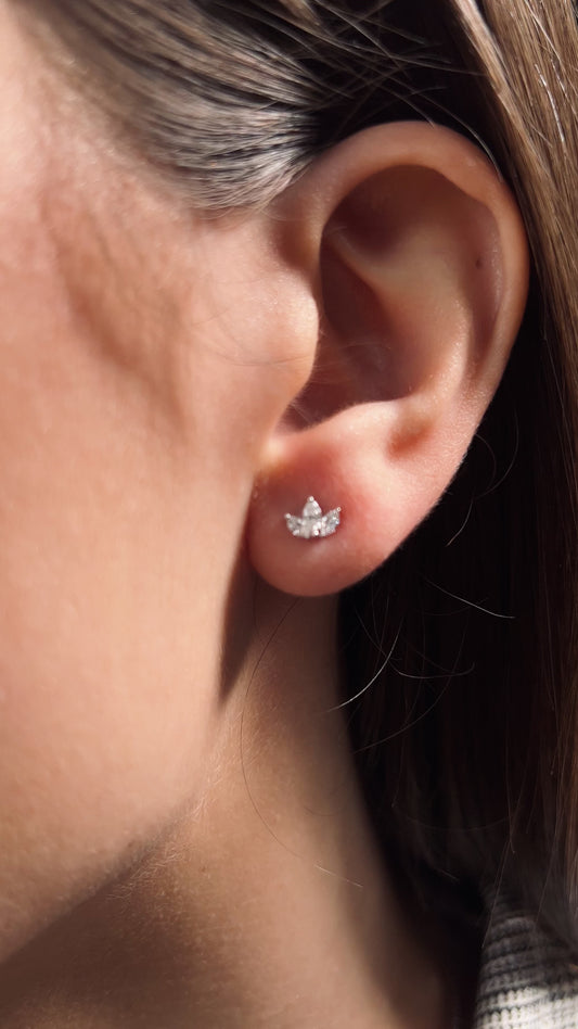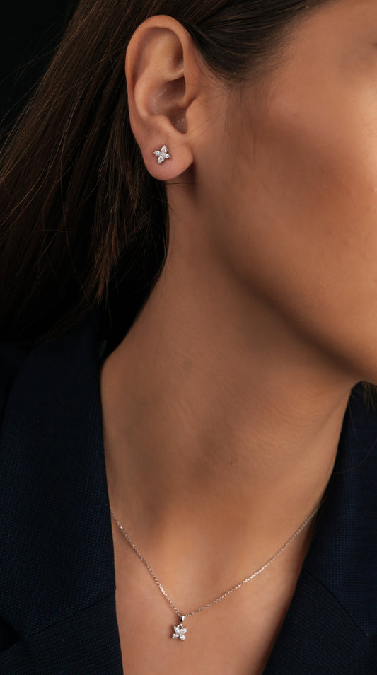 Minimal Çiçek Beyaz Altın Pırlanta Küpe