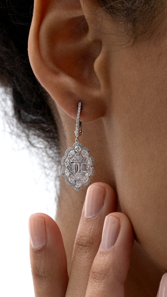 Nefertiti'nin Zarafeti Beyaz Altın Baget Pırlanta Küpe