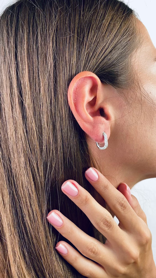 Modern Yarımtur Beyaz Altın Pırlanta Halka Küpe