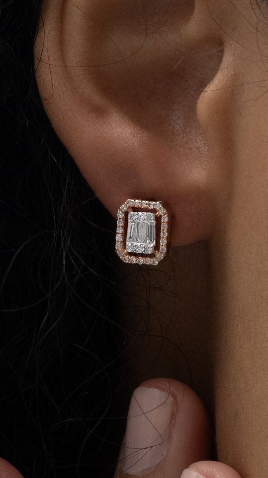 Sunrise Rose Altın Baget Pırlanta Küpe