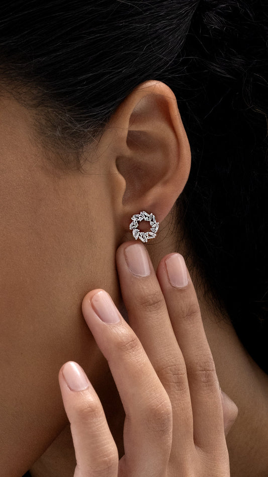 Aurora Tacı Beyaz Altın Baget Pırlanta Küpe