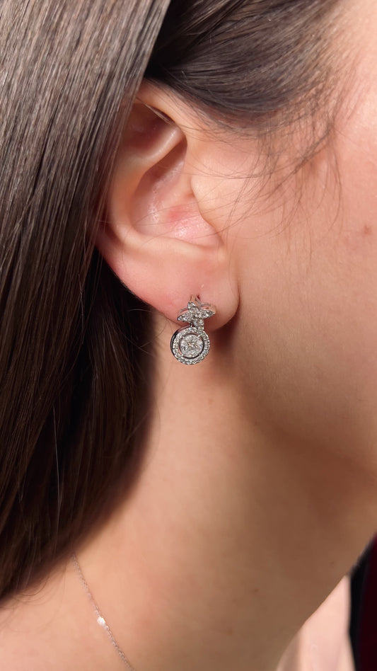 Işıltılı Çiçek Beyaz Altın Marquise Pırlanta Küpe