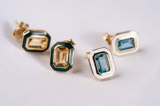 Hexa- Sitrin ve Yeşil Mineli Altın Küpe