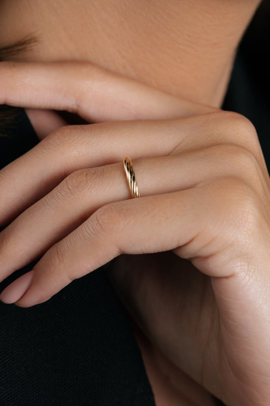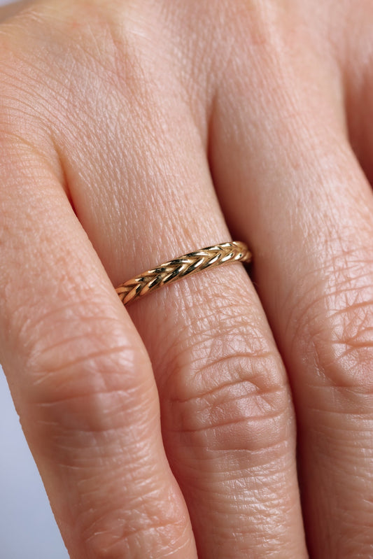 İndirimÖrgü Desenli İnce Altın Yüzük