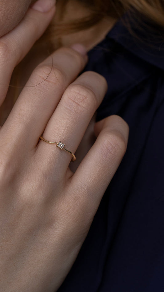 Minimal Tasarımlı Altın Baget Pırlanta Yüzük