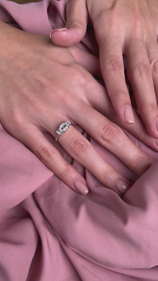 Prenses Baget Pırlantalı Beyaz Altın Yüzük