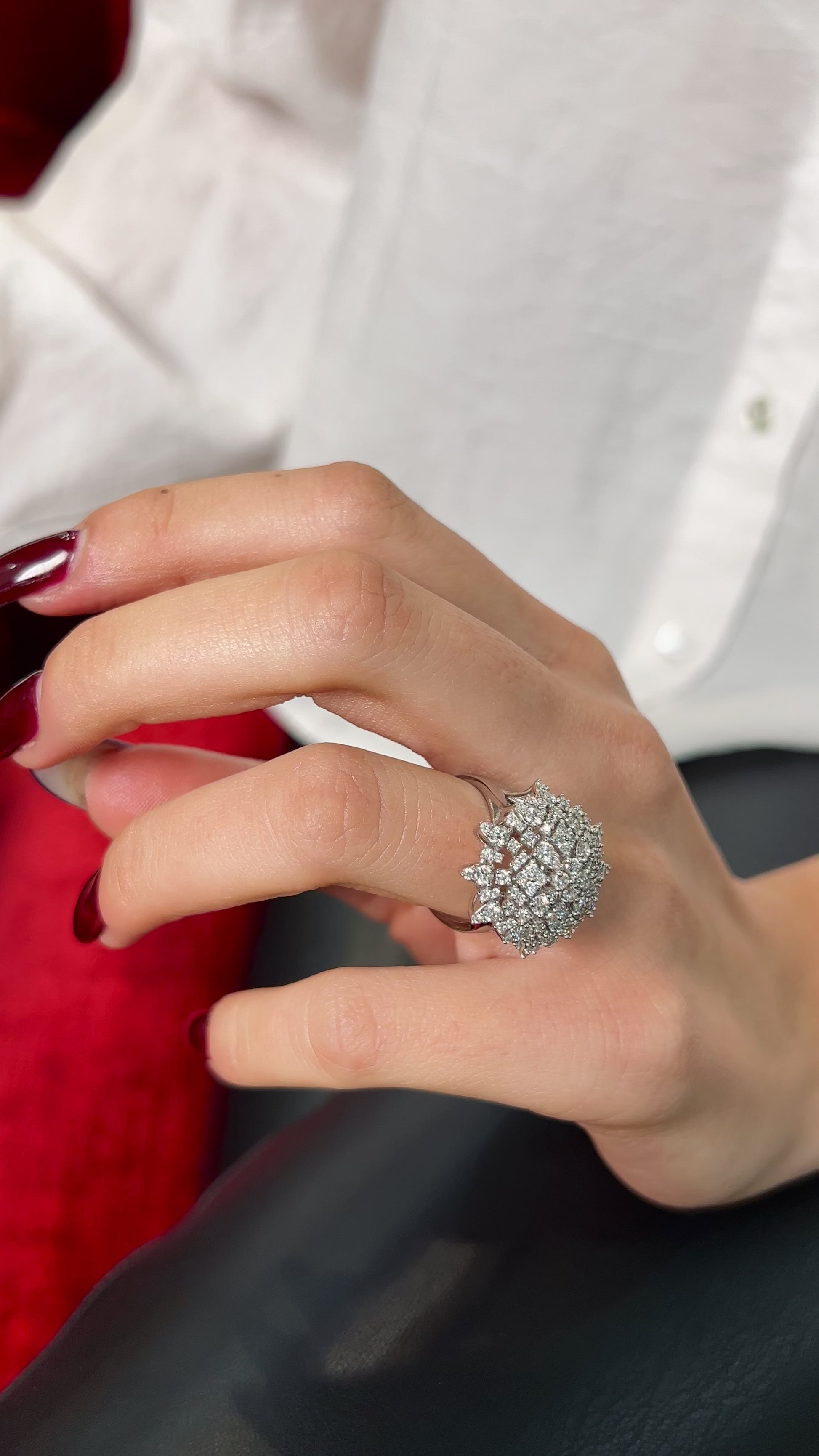 Görkemli tasarımıyla dikkat çeken 1.46ct Kraliyet Pırlantası Yüzük, adeta asaletin simgesi. Üzerindeki her bir pırlanta taşın incelikle yerleştirildiği bu eşsiz model, kraliyet ihtişamını parmaklarınıza taşıyor. Işığı mükemmel bir şekilde yansıtan pırlantalarıyla her hareketinizde göz kamaştıran bir parıltı yaratır. Günlük kullanımdan özel davetlere kadar her anınıza şıklık katacak bu yüzük, zarafeti ve ışıltıyı bir arada sunar. Kendinizi bir kraliçe gibi hissetmek istiyorsanız, bu nadide tasarım tam size göre!