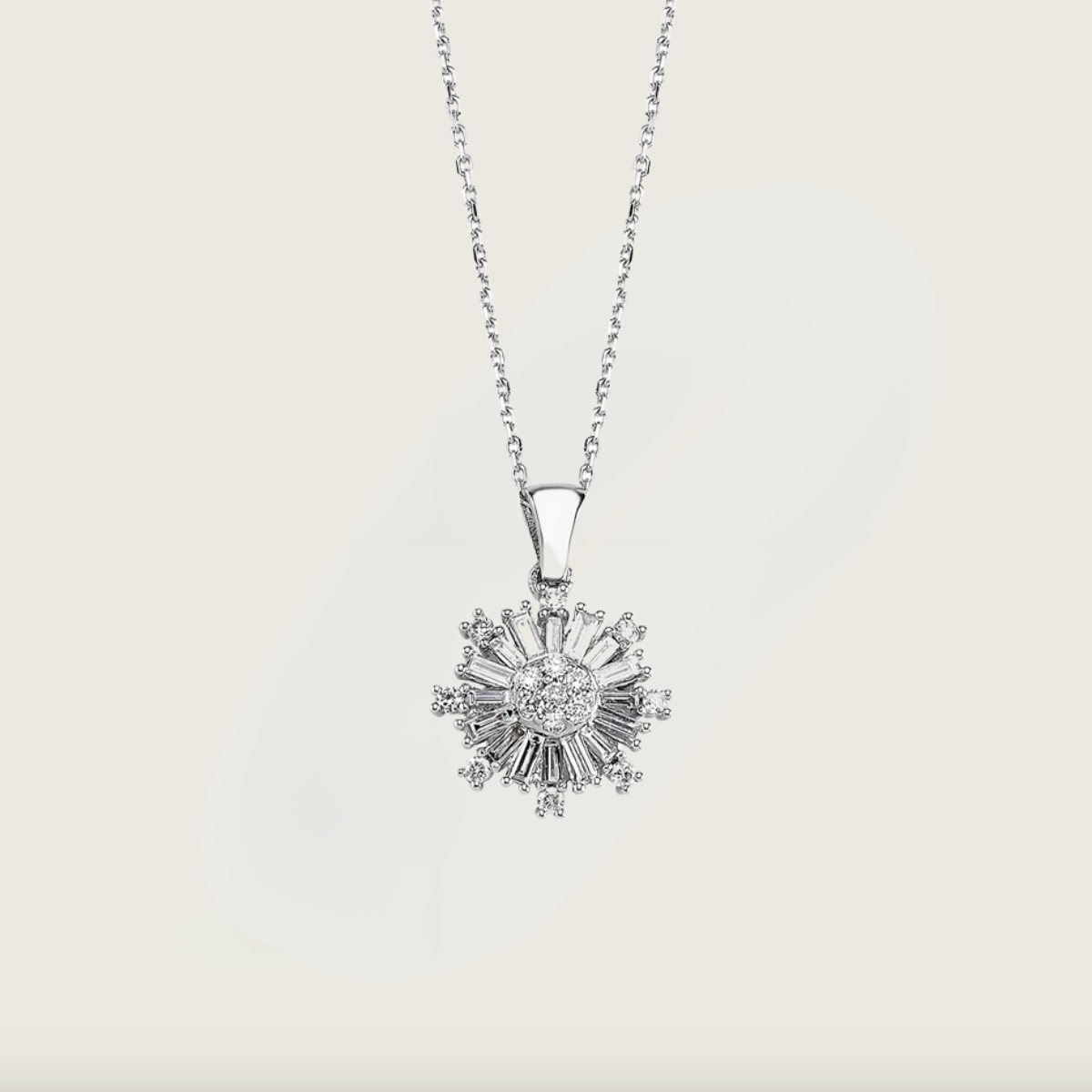 Altın Işıltılı Güneş Baget Pırlanta Kolye