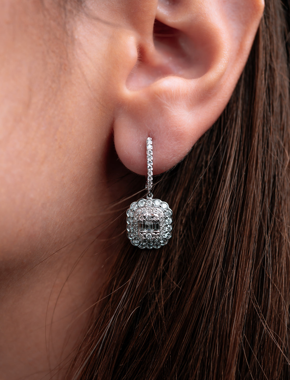 Aşk ve güzellik tanrıçası Aphrodite'in zarafeti ve çekiciliğinden ilham alan bu 14 ayar beyaz altın küpeler, modern tasarımın mitolojik unsurlarla buluştuğu eşsiz bir parçadır. Pırlantaların ışıltısı, antik dönemin ihtişamını yansıtırken her detayı incelikle düşünülmüş bir mücevher sunuyor. Baget kesim pırlantaların etrafını saran yuvarlak pırlantalar, ışık oyunları yaratarak büyüleyici bir parlaklık sunuyor. Özel anlarınızda Aphrodite'in büyüleyici enerjisini yanınızda hissedeceksiniz.