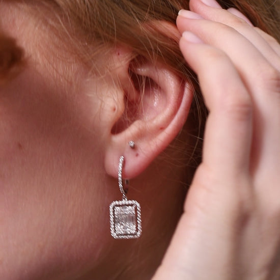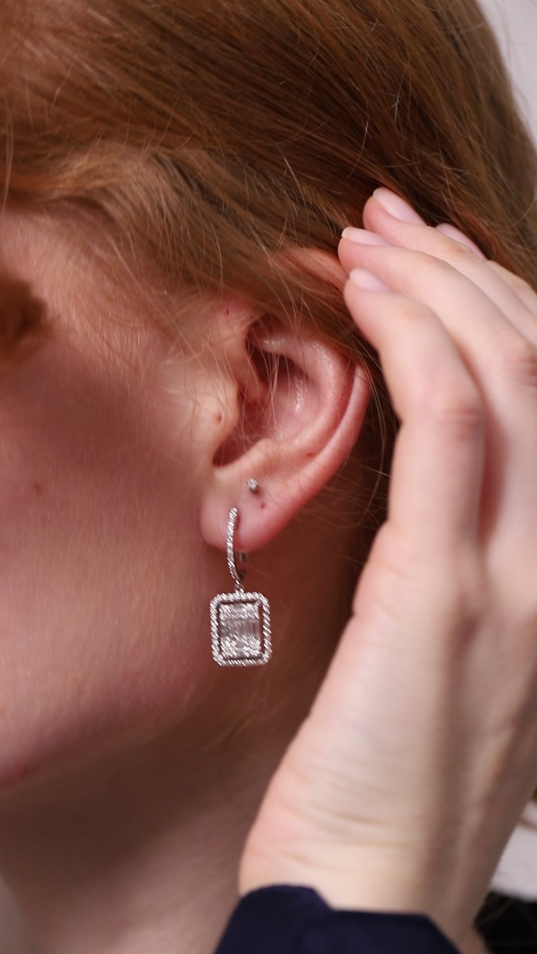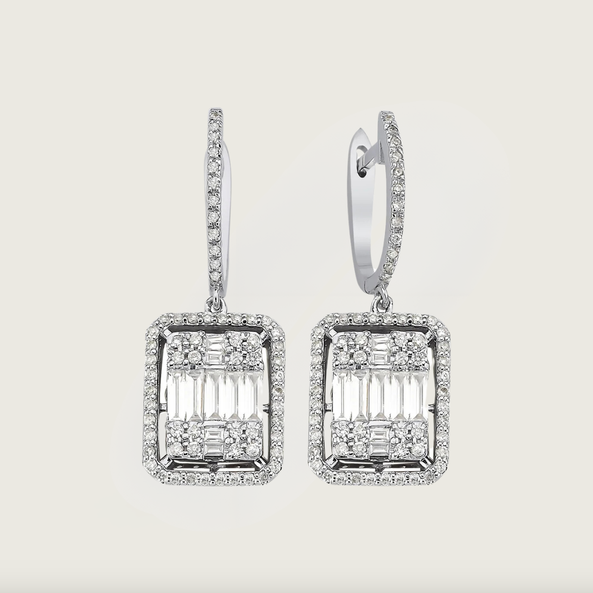 Aphrodite'nin Gözdesi Beyaz Altın Baget Pırlanta Küpe