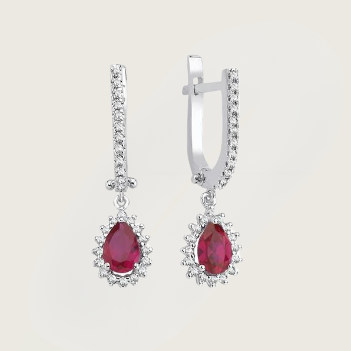 İçinde barındırdığı zarafet ve ihtişam ile tasarlanan bu 14 ayar beyaz altın küpeler, göz kamaştırıcı yakut taşlarıyla ruhunuza ateşin gücünü getiriyor. Yakutların sunduğu güç, ilham ve başarı enerjisi, bu özel tasarımda zarif bir dokunuşla birleşiyor. Çevresindeki pırlantalarla daha da göz alıcı hale gelen bu mücevher, her anınıza sofistike bir şıklık katacak.
