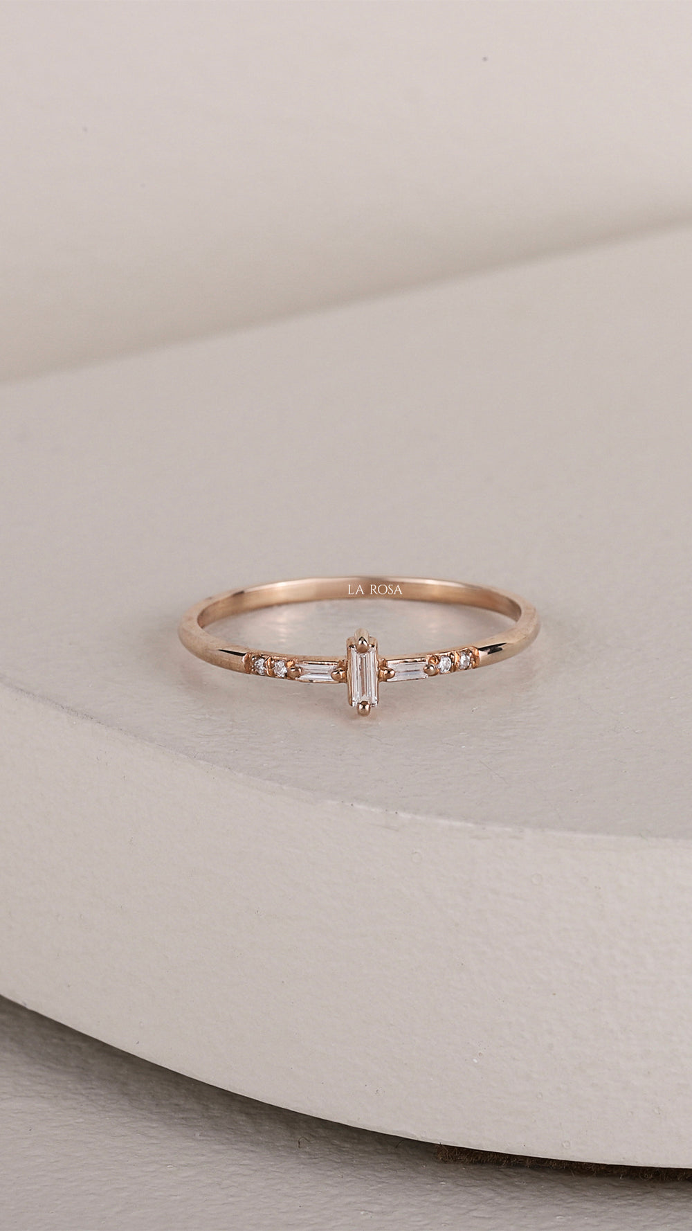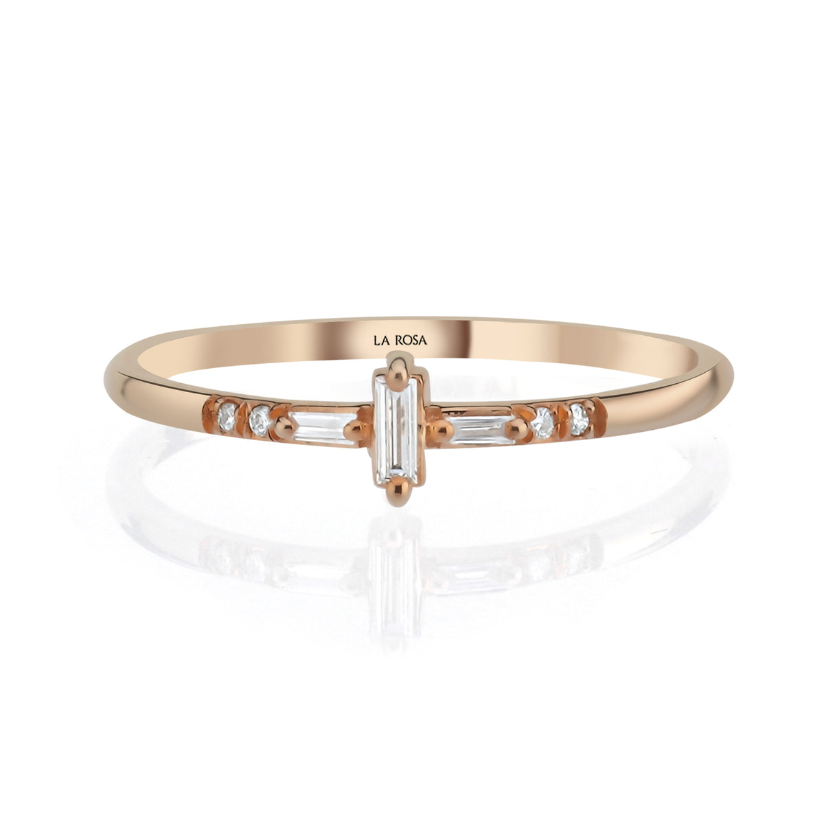 Aurora Rose Altın Baget Pırlanta Yüzük