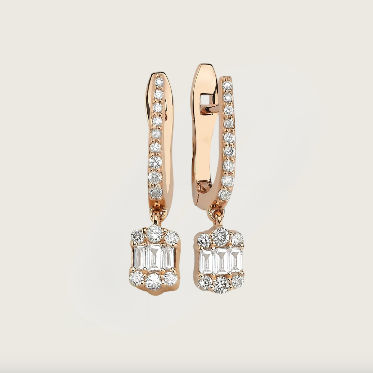 Baget Elegansı Rose Altın Pırlanta Küpe
