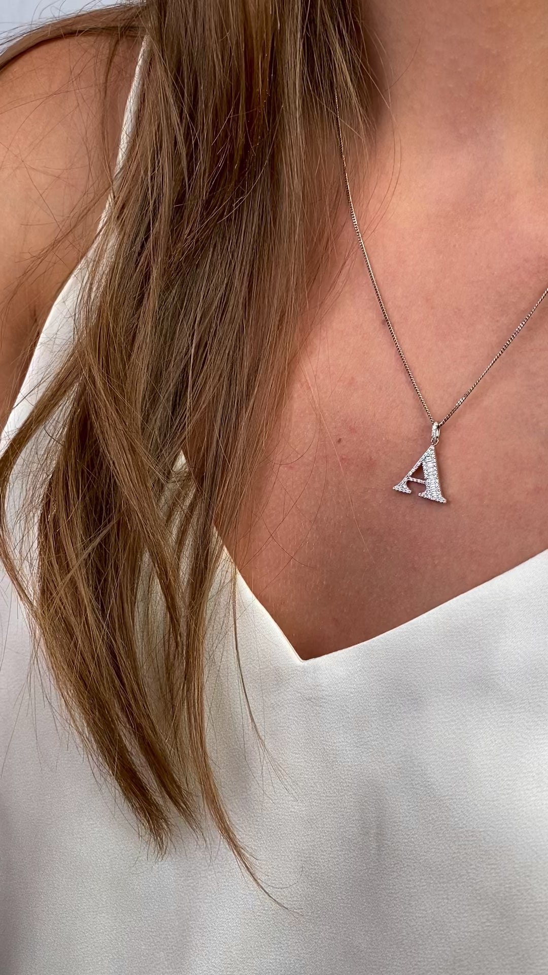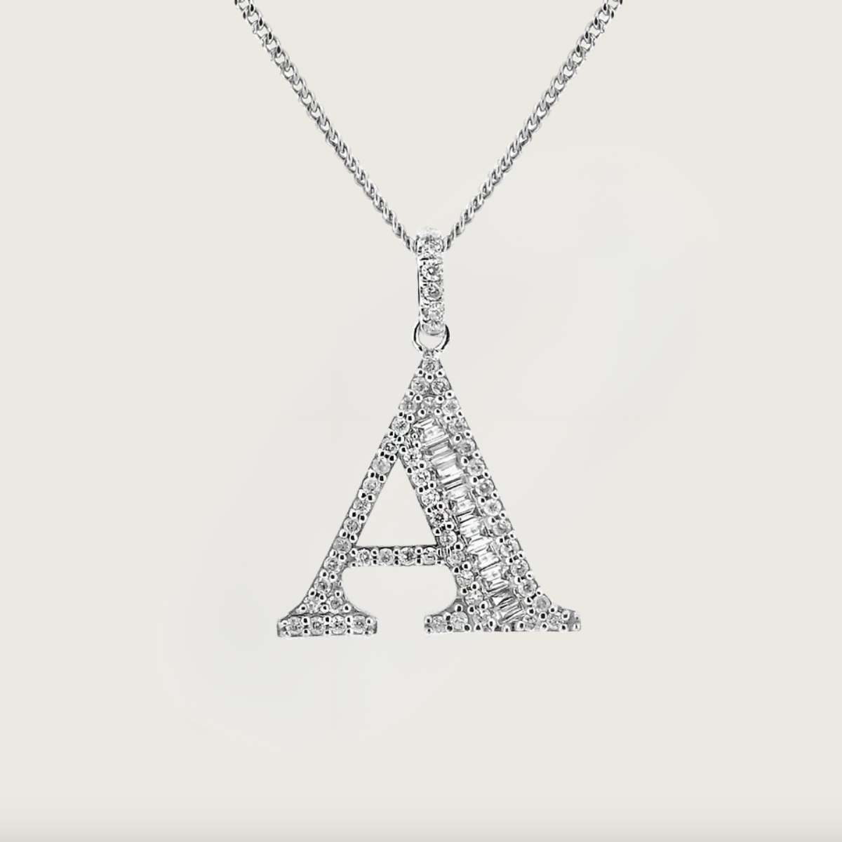 Baget Işıltısı Beyaz Altın Pırlanta A Harf Kolye