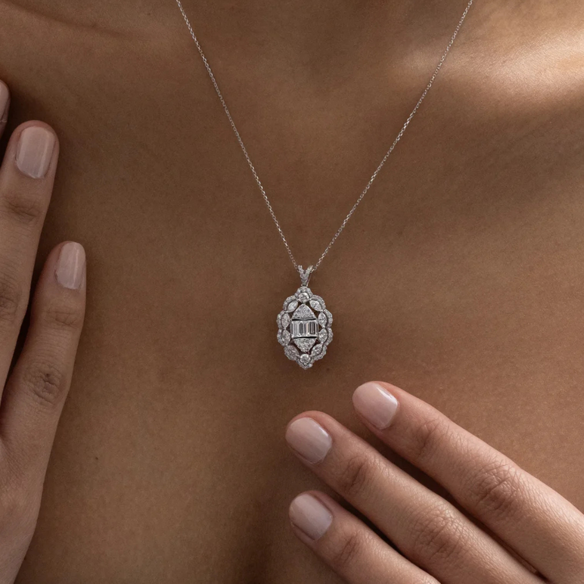 Baget ve Markiz Işıltısı Beyaz Altın Pırlanta Kolye