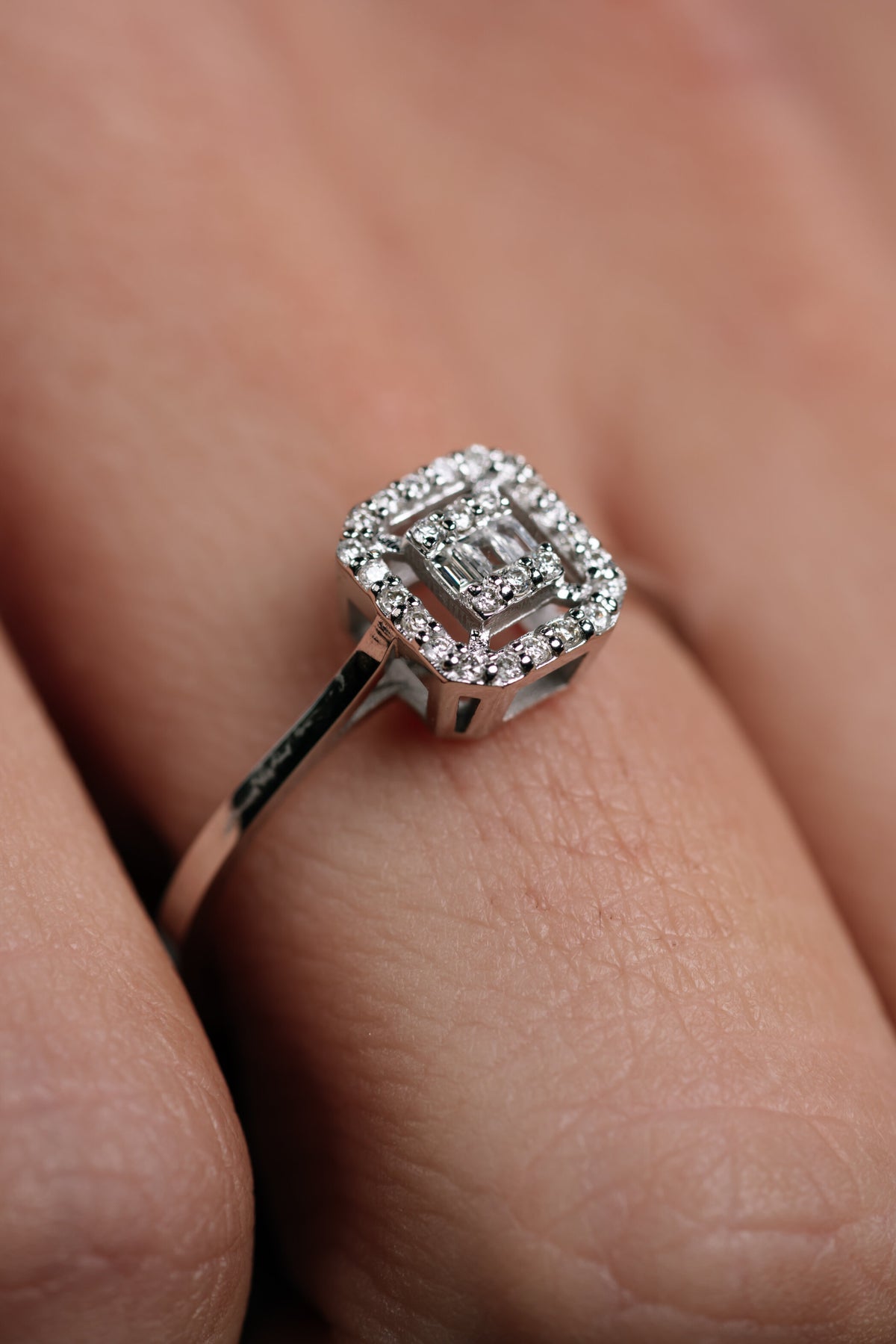 14 Ayar Beyaz Altın'dan üretilmiş Baget Kesim Pırlanta Yüzük, zarif tasarımı ve modern dokunuşlarıyla göz kamaştıran bir mücevherdir. Bu yüzük, pırlantaların benzersiz baget kesimi ile sofistike bir görünüm sunar. Hem günlük kullanımda hem de özel davetlerde tarzınıza zarif bir dokunuş katmak için mükemmel bir seçimdir. Baget ve yuvarlak kesim taşların birleşimi, bu yüzüğü çarpıcı ve unutulmaz bir parça haline getiriyor. Şıklığınızı tamamlayacak bu yüzük ile her anınızda dikkatleri üzerinize çekin.