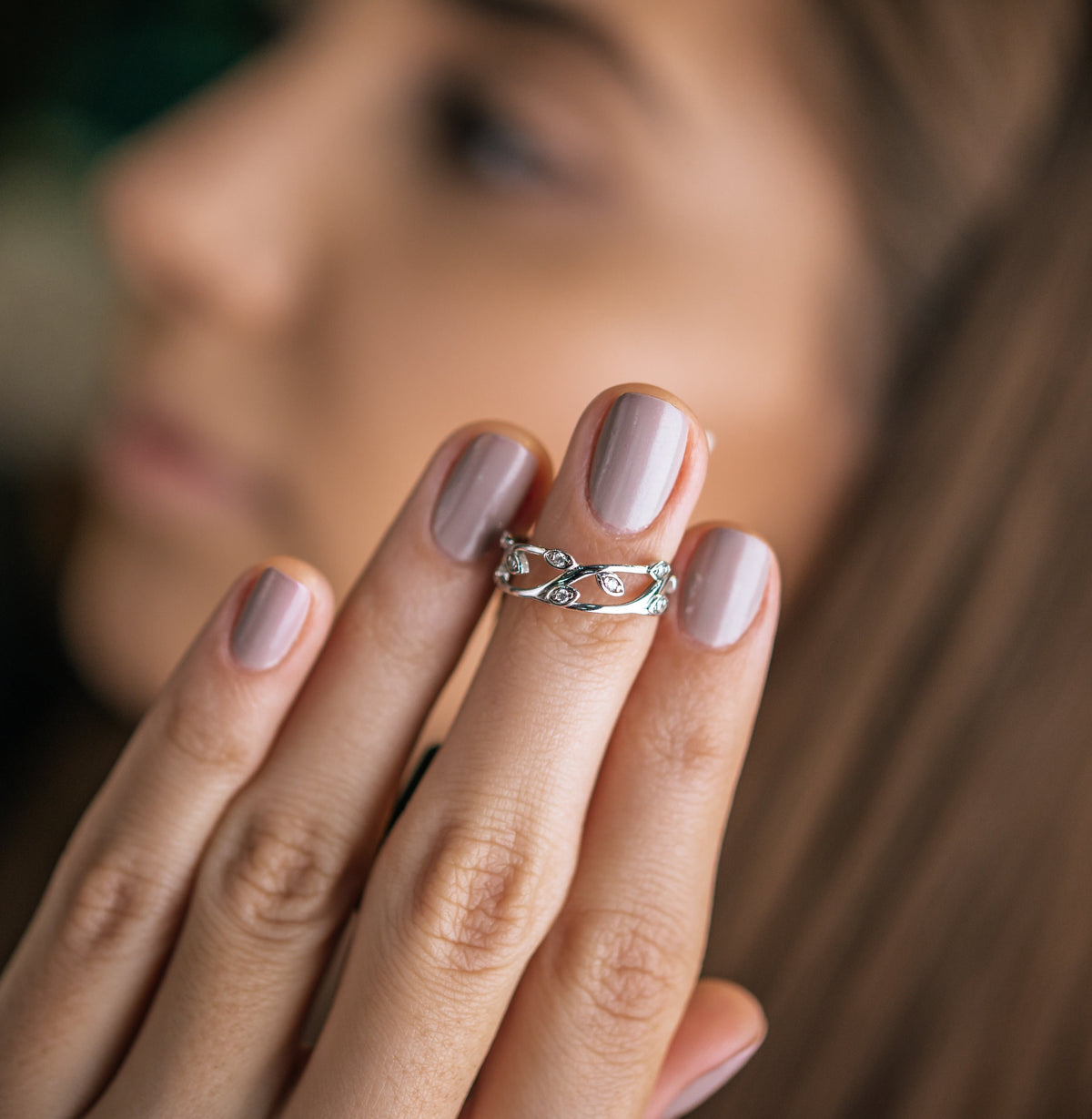 Beyaz Altın Dal Motifli Pırlanta Yüzük