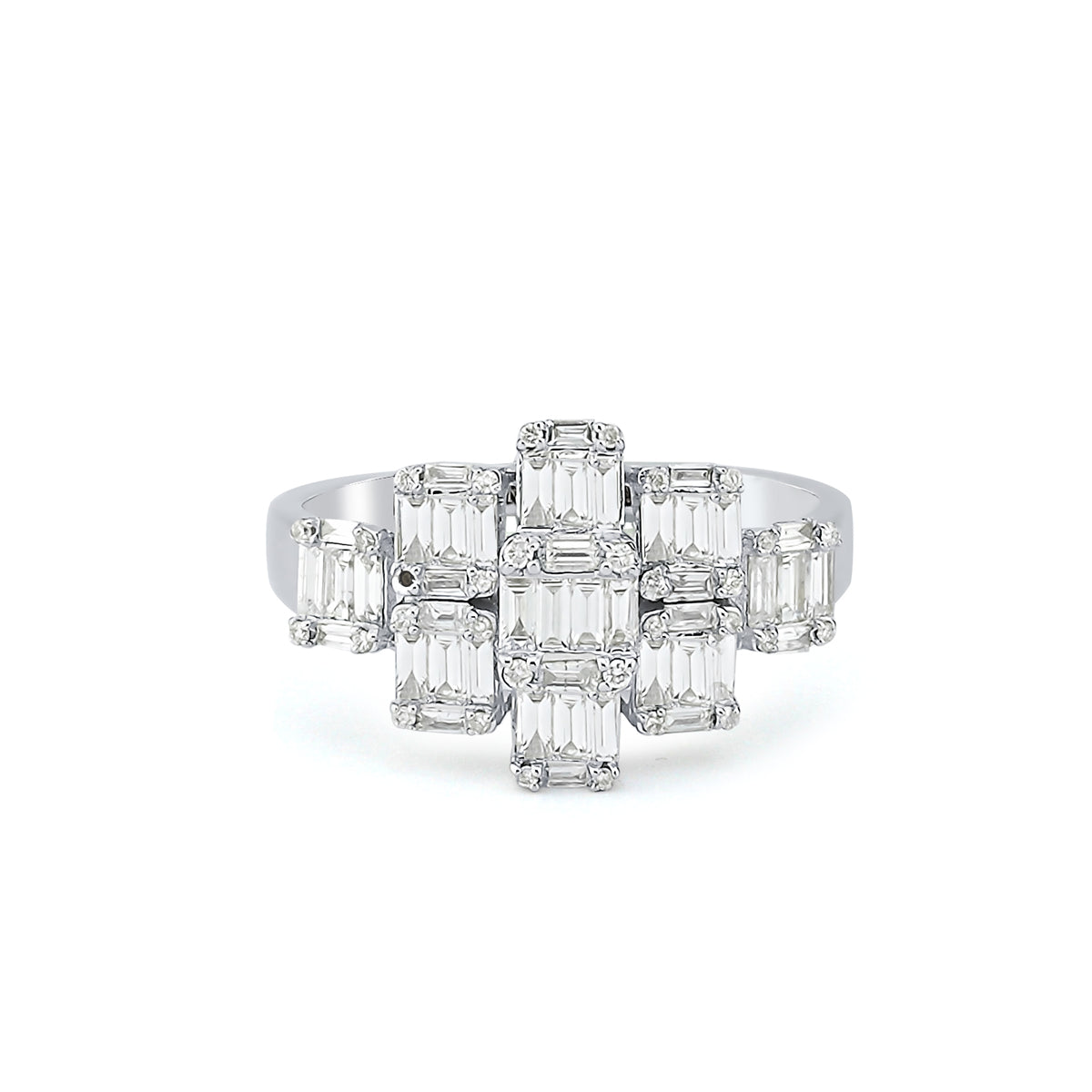 Beyaz Altın Flower Baget Pırlanta Yüzük
