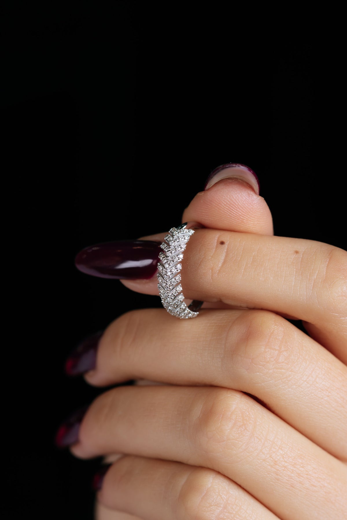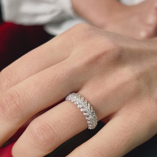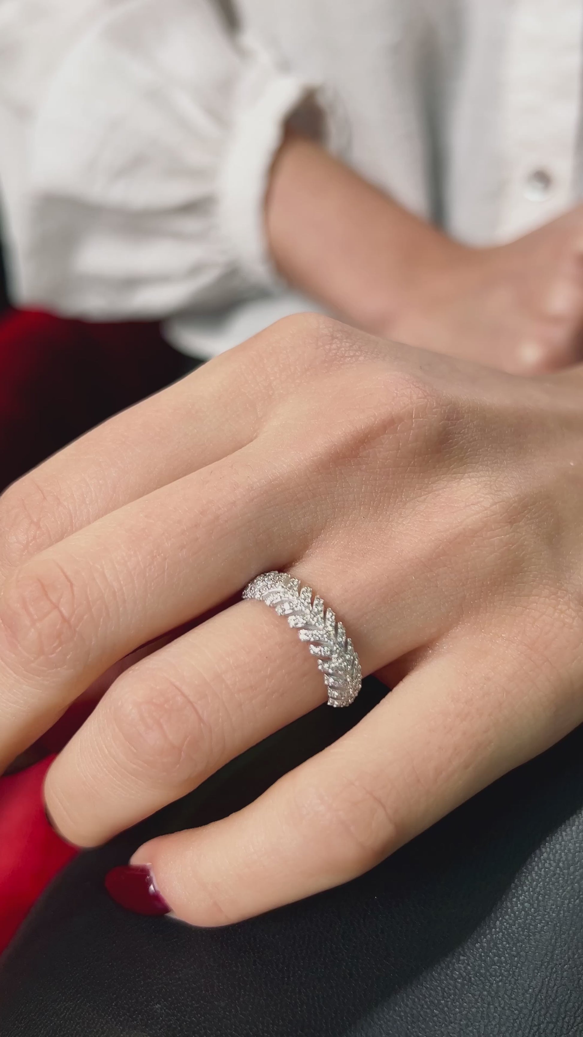 Beyaz Altın Yaprak Motifli Pırlanta Yüzük