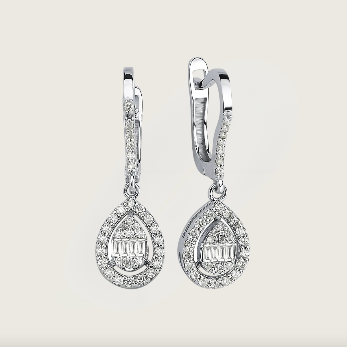 Beyaz İnci Baget Pırlanta Küpe, göz alıcı damla tasarımıyla zarafeti yansıtır. 14 ayar beyaz altın üzerine işlenmiş baget kesim pırlantalar, küpelerin merkezinde parıldarken, ince detaylarla çevrelenmiş yuvarlak pırlantalar ile tamamlanmıştır. Her anınıza ışık katacak bu tasarım, sofistike ve modern şıklığı bir araya getiriyor. Özel davetlerde ve günlük kombinlerinizde dikkat çekici bir tercih.