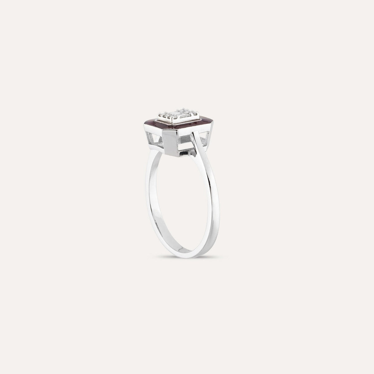 Bordo Mineli Baget Pırlanta Sekizgen Yüzük