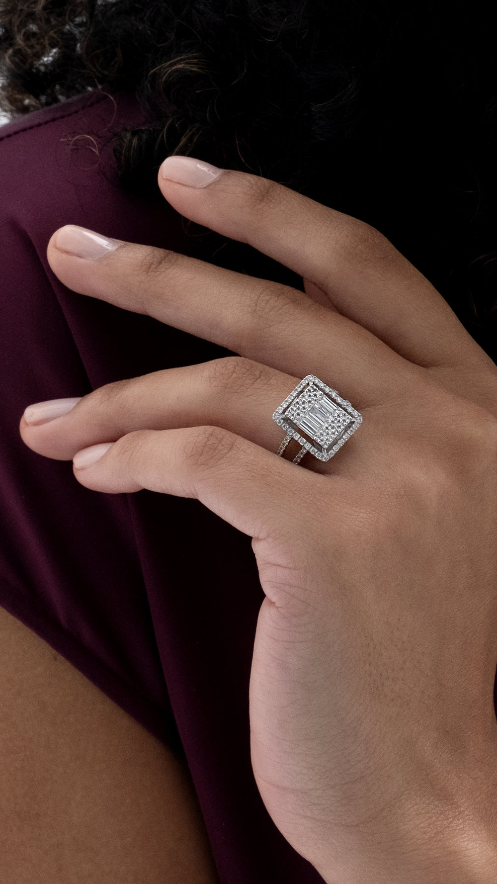 Büyüleyici Baget Pırlanta Beyaz Altın Yüzük