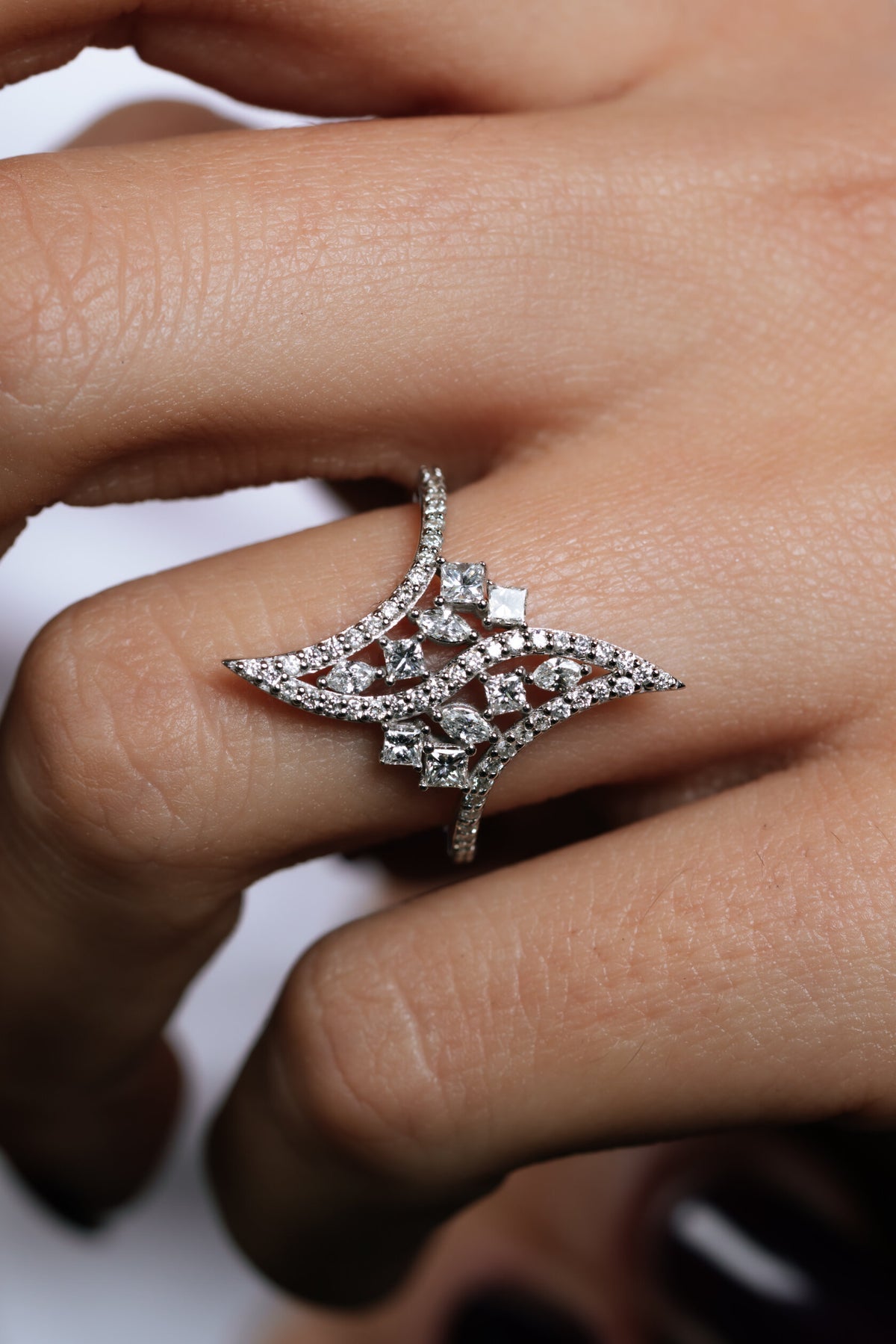 Modern tasarımın zarafetle buluştuğu eşsiz bir parça. Kıvrımlı yapısı, göz alıcı pırlantalarla süslenerek her açıdan parlayan bir ışıltı sunar. Beyaz altın veya rose altın seçenekleriyle sunulan bu yüzük, hem günlük hem de özel anlarda stilinizi tamamlar. Duygusal anlarınızı taçlandırmak veya sevdiklerinize özel bir hediye vermek için mükemmel bir seçim.