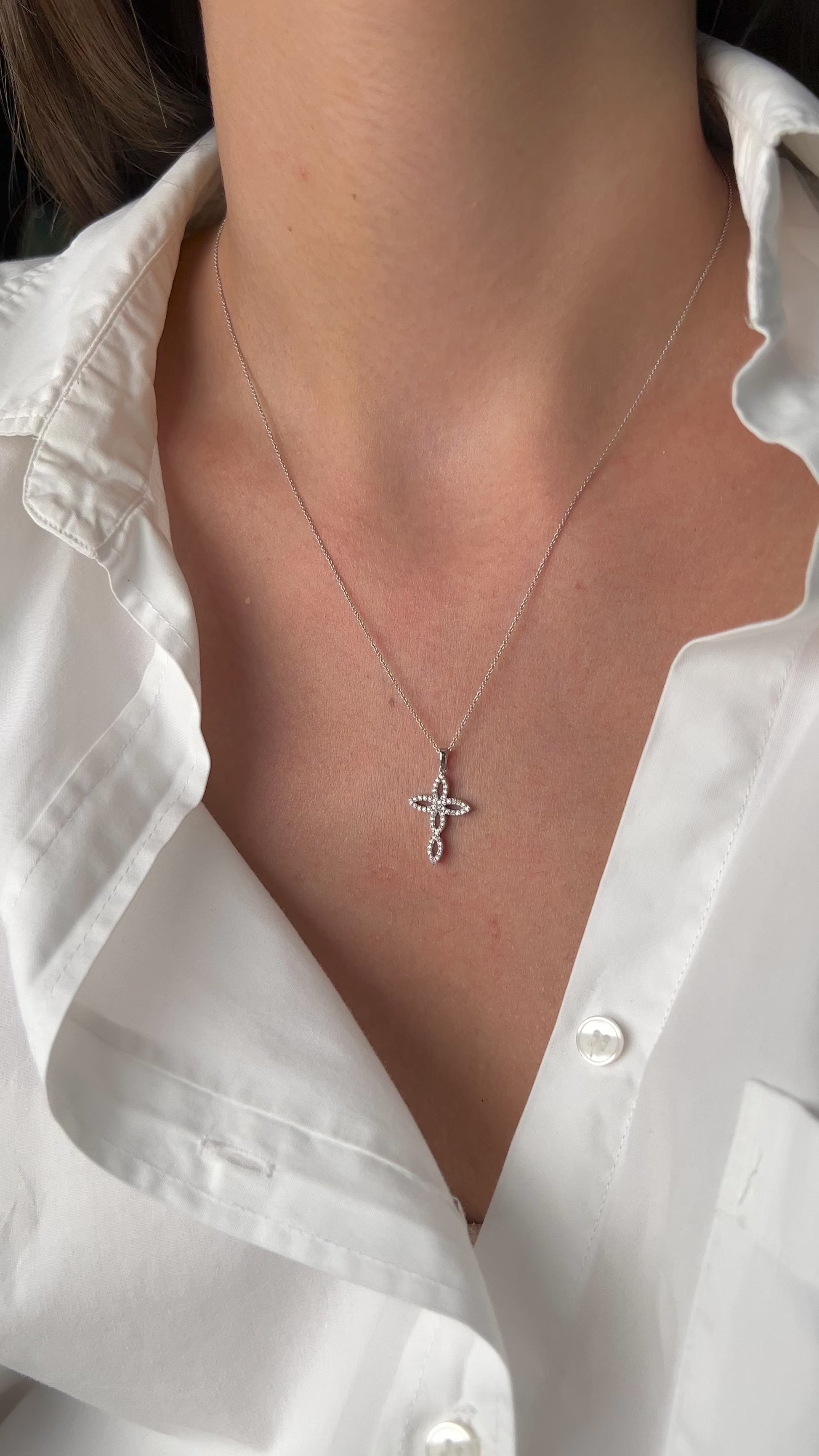 Bu özel tasarım kolye, çapraz motifli detayları ve pırlanta ışıltısıyla stilinizi zarafetle tamamlıyor. Benzersiz işçiliği ve modern çizgileriyle dikkat çeken bu parça, günlük ve özel günlerde fark yaratmak isteyenler için mükemmel bir seçenek. La Rosa'nın zarif dokunuşları ile tasarlanan bu kolye, incelik ve kaliteyi bir araya getiriyor. Şıklığınıza zarif bir dokunuş katmak ve her anınıza özel bir anlam yüklemek için ideal bir seçimdir.